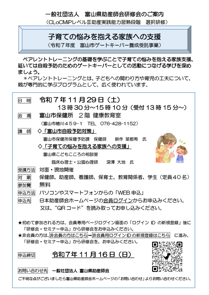 開催当日のチラシはこちらをご覧ください➔https://toyamamidwife.sakura.ne.jp/cms/wp-content/uploads/2025/10/947fdeab9ea5955e968c801e0342120f.jpg